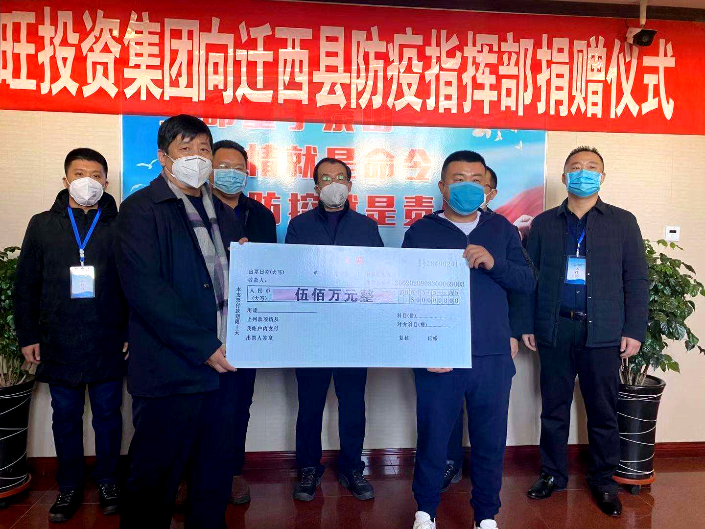 勇擔(dān)責(zé)任、抗擊疫情! 2020年2月3日上午,河北亨旺投資集團(tuán)董事長(zhǎng)付學(xué)飛通過(guò)紅十字會(huì),向遷西縣疫情防控工作指揮部定向捐款500萬(wàn)元。其中向各鄉(xiāng)鎮(zhèn)(街)定向捐款260萬(wàn)元,向三屯、白廟子兩個(gè)衛(wèi)生院定向捐款40萬(wàn)元。縣委副書記、縣長(zhǎng)王錦山,副縣長(zhǎng)周定奎出席捐款儀式。