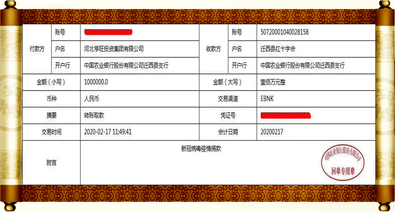 2月3日河北亨旺投資集團(tuán)捐款500萬(wàn)元