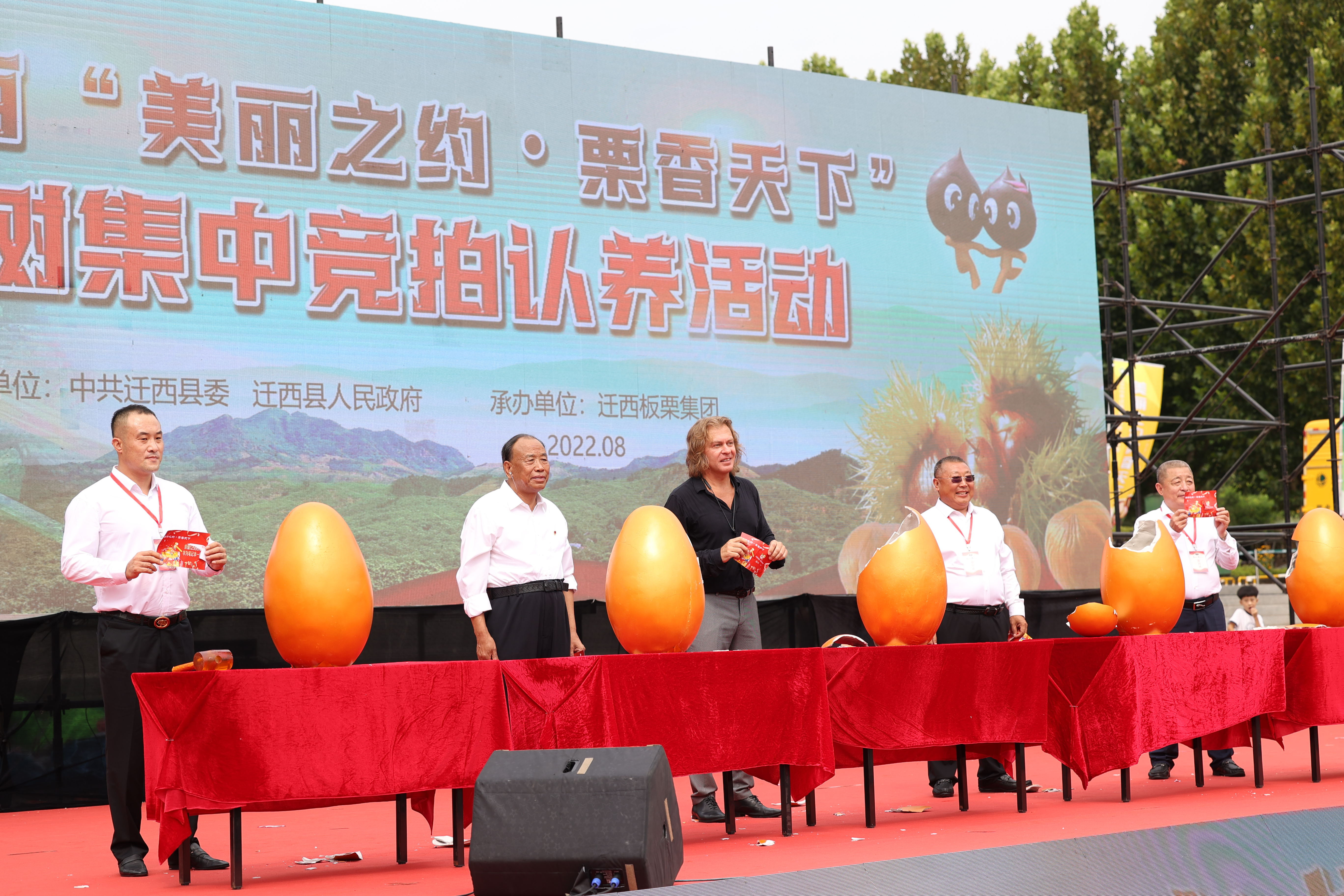 2022年8月21日上午,我縣在中國板栗博物館廣場開展首屆中國遷西“美栗之約?香滿天下”板栗樹集中競拍認(rèn)養(yǎng)活動(dòng)。中國工程院院士尹偉倫,北京農(nóng)學(xué)院植物科學(xué)技術(shù)學(xué)院院長秦嶺,農(nóng)業(yè)農(nóng)村部中國綠色食品發(fā)展中心主任張華榮,河北省林草局副局長王宇等各級(jí)領(lǐng)導(dǎo)和來自日本、意大利、俄羅斯、烏克蘭等國家的外國友人、媒體記者出席活動(dòng)。中國食品土畜進(jìn)出口商會(huì)板栗分會(huì)秘書長孫宇,唐山市政協(xié)副主席董學(xué)忠,遷西縣委書記蔡宗健分別在認(rèn)養(yǎng)活動(dòng)上致辭。遷西縣四大班子領(lǐng)導(dǎo)出席活動(dòng)。